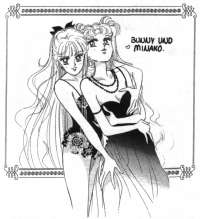 ![]() (Haruka & Michiru, aus "Sailor Moon S") Glossar: - Shojo Manga: jap. Mädchencomic - "Shojo Ai": wörtl. "Mädchenliebe", Pseudojapanisch für: lesbische Liebe im jap. Comic - eigentlich: "Yuri": jap. "Lilie", der Begriff existiert mind. seit den 70ern, "Yuri-Zoku" ( "Stamm der Lilien") wurde parallel zu "Bara-Zoku" ( "Stamm der Rosen" = Schwule) verwendet. Sailor Moon, oder: "Das besprechen wir später im Bett." ![]() Die Schülerin Bunny Tsukino begegnet der Katze Luna, die ihr enthüllt, dass sie Wirklichkeit die Superheldin Sailor Moon ist. Im Laufe der Zeit trifft sie weitere Mädchen, die sich als Sailor Venus, Sailor Mars, Sailor Merkur etc. herausstellen (und, wie wir zugeben müssen, Mamoru/ Tuxedo Mask, in den sie sich verliebt). Die frühen Abenteuer sind noch konventionell gestrickt, obwohl die Autorin bereits hier unkommentiert Bilder wie (Abb.) einstreut. Bei den Fans wurde es allgemein üblich, über Liebesbeziehungen zwischen den Sailor- Kriegerinnen zu spekulieren. Aber dann stiessen die wunderbaren Sailor Uranus (alias Haruka Tennoh) und Sailor Neptun (alias Michiru Kaioh) zu der Truppe. Haruka ist eine typische Butch, die Autorennen fährt und sich einen Spass daraus macht, Heteromädchen zu beflirten. Michiru ist Violinistin und Malerin, und die beiden lernen sich auf einer Kreuzfahrt näher kennen (Hach!). Sämtliche Sailor- Kriegerinnen verlieben sich in Haruka, Bunny lässt sich sogar vor ihr küssen, als ihr Freund Mamoru grade mal weg ist. Als wären damit alle Dämme gebrochen, führt Takeuchi immer mehr "queere" Charaktere ein: Z.B. die "Sailor Starlights", ein Kriegerinnen- Trio, das seine irdische Existenz als Boygroup (!) bestreitet und ansonsten seine verlorene Prinzessin sucht: "Deinen Duft, immer habe ich ihn gesucht. Höre meine Stimme, wie sie nach dir ruft: "Ich liebe dich!" Wo magst du jetzt sein, Prinzessin des Mondlichts? Meine Prinzessin, antworte mir! Schon bald!" (The Three Lights) Auch auf der Feindseite wimmelt es von Genderbendern, z.B. der süsse Fischauge, der in Frauenkleidern Mamoru nachstellt. Bei den jungen Sailor Moon- Fans hat sich inzwischen eine Art Subkultur gebildet und man liest häufig in Kleinanzeigen "Haruka sucht ihre Michiru". Shojo Manga- wörtl. "Lustige Bilder für kleine Frauen" Die ersten Romane der Weltgeschichte wurden um das Jahr 1000 von japanischen Hofdamen geschrieben. In der damaligen Adelsgesellschaft galt bisexuelles Verhalten als normal. Viele Elemente des heutigen Shojo Manga, wie Geschlechtswechsel, Blumensymbolik oder assoziative Handlung, finden sich interessanterweise bereits in den höfischen Romanen, z.B. in "Die vertauschten Geschwister". Ein Gedicht stellte doppeldeutig fest: Die Hofdamen spielen immer wieder gerne Das Muschelzusammenlegen* (*"Muschelzusammenlegen" ist japanisches Memory.) ![]() Bis in die 70er wurden die meisten Comics, wie im Westen, von Männern gezeichnet. Ein früher Vorläufer des Shojo Manga war "Ribon no Kishi" von Tezuka Osamu, dem "japanischen Walt Disney". Der von der Takarazuka- Revue (siehe Januar- Lespress) inspirierte Comic handelt von einer Prinzessin, die als Prinz lebt, um ihr Reich zurückzuerhalten. In der 70ern eroberten progressive junge Zeichnerinnen mit Themen wie Geschlechtwechsel und Homosexualität den Shojomarkt. Am bekanntesten ist Ryoko Ikeda, deren Klassiker "Berusai no Bara" ( "Die Rose von Versaille") noch heute von Takarazuka als Revue aufgeführt wird: Die Adelige Oscar lebt während der Französischen Revolution als Mann und verteidigt Marie Antoinette. Die hier nur angedeuteten lesbischen Elemente formulierte Ikeda in ihren nächsten Mangas aus. Shojo Manga haben einen grossen Einfluss auf andere Kulturprodukte genommen, z.B. auf den Roman "Kitchen" der jungen Autorin Banana Yoshimoto. Seit den 90ern hat Japan, ähnlich wie westliche Länder, einen "Lesbenboom" in den Medien erlebt. Hinzu kommt eine traditionell tolerantere Einstellung: Homosexualität war nie strafbar. Ein schwuler Mann sagt: "Ich musste nie befürchten, meinen Job zu verlieren, weil ich schwul bin, ..ich habe nie jemanden getroffen, der im Gefängnis war, weil er schwul ist...es gibt hier keine religiösen Vorstellungen von der Homosexualität als Sünde, welche dann Selbsthass erzeugen.." (aus: Queer Japan) "...solange die Sexualpraktiken einer Person nicht die Institutionen Ehe und Haushalt stören oder hinterfragen, erlaubt ...die japanische Gesellschaft eine grosse Bandbreite sexuellen Verhaltens." (J. Robertson) " Diese Toleranz gilt sogar für homosexuellen Sex, der, obwohl nicht darüber gesprochen wird, in Japan leicht zu haben ist." (M. McLelland) Aufgrund der Struktur des Japanischen ist es manchmal schwer, das Geschlecht einer Comicfigur festzustellen. Oder es wechselt ständig: Im Manga "Ranma _" wird der Protagonist jedes Mal zum Mädchen, wenn er mit Wasser in Berührung kommt... Die hier vorgestellten Serien sind nur ein Bruchteil der in Japan erhältlichen Yuri, Shonen Ai (schwule) oder Genderbender Manga. "Mann oder Frau, was kümmert’s mich, ich bin soderso kein menschliches Wesen!" — Card Captor Sakura ![]() Die Leserin fragt sich, wie die Autorinnen mit dieser Geschichte bei ihrem Verlag durchgekommen sind. Und tatsächlich setzt ab Band 7 so etwas wie eine Zensur ein: Liebesgefühle werden halbherzig als magische Energiephänomene (weg?) erklärt und Sakura mit dem kleinen Magier Li Shaolan verkuppelt, der ebenfalls in Yukito verliebt war. Aber so einfach geben sich die Autorinnen dann doch nicht geschlagen: Ein geschlechtwechselndes Wesen (siehe Überschrift) erscheint und stellt Toya nach, der aber Yukito treu bleibt. Und auch die Liebe zwischen Tomoyo und Sakura wird immer wieder aufgefrischt. In allen Serien von Clamp tauchen homosexuelle Haupt- oder Nebencharaktere auf. Ein besonderes Experiment wagten sie mit dem erotischen Manga "Miyuki- Chan in the Wonderland". Miyuki gelangt in ein phantastische Welt, die ausschliesslich von Frauen bewohnt w