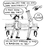 Homicidal Lesbian Terrorist![]() Hothead Paisan schafft das Kunststück politisch komplett unkorrekt und dabei durch und durch feministisch (oder fe-MUH-nistisch, wie sie zu sagen pflegt) zu sein. Sie lebt aus, wovon Frauen/ Lesben im allgemeinen nur träumen. Die koffein- und fernsehsüchtige Punklesbe Hothead wohnt mit ihrer meditierenden Katze Chicken in einer WG. Ihre beste Freundin Roz und ihre Geliebte Daphne versuchen (ohne großen Erfolg), ihre Rachefeldzüge gegen die patriarchale Umwelt zu stoppen und sie zu einem gesünderen Lebensstil zu animieren. ![]() Daphne: Wann hast du das letzte Mal Gemüse gegessen? Hothead: Keine Ahnung. Was ist das? Daphne: Oh Gott! Hothead: Nee, war nur'n Witz! 1988 hab ich mal'n Radieschen gegessen! Diane DiMassa hat Hothead Paisan mehrere Jahre im Selbstverlag (Giant Ass Press!) herausgebracht, außerdem sind zwei Sammelbände erschienen. Der Comic und seine Autorin sind inzwischen zu unerwartetem Ruhm gekommen: Das Spektrum reicht von Zeitungsartikeln bis zu hochwissenschaftlichen Aufsätzen und HH Schokoriegeln. Und in Kanada wurde der Comic als gewaltverherrlichend verboten- das kommt dabei heraus, wenn frau konservative Politiker bei der Zensurgesetzgebung unterstützt!! (Amn.: In Kanada wurde in den 90ern von Konservativen und Feministinnen gleichermaßen eine Verschärfung der Gesetze gegen Pornographie und gewaltverherrlichende Darstellungen durchgesetzt. Hothead Paisan war einer der ersten Titel, die auf den Index kamen.) DiMassa spricht in ihrem Comic auch weitere "unangenehme" Themen an: HH praktiziert S/M, sie liebt Hermaphroditen und ihre Geliebte Daphne ist ungeklärten Geschlechts. Alles Lüge, oder: Wie ich lernte, im Stehen zu pinkeln ![]() Es sollte einige Jahre dauern, bis ich die Wahrheit herausfand: Ich stolperte über das Buch "The Great Women Cartoonists" (früher "A Century of Women Cartoonists) von Trina Robbins und erfuhr, dass bereits Ende des 19. Jahrhunderts Zeichnerinnen enorme Popularität genossen hatten. In den 20ern schuf Nell Brinkley den legendären "Brinkley-Look" und war berühmt wie ein Popstar. Während des 2. Weltkriegs wurden Zeichnerinnen auch an typische Männerthemen wie Action- und Kriegscomics herangelassen. Erst mit dem Niedergang des Comics in den 60ern wurden Zeichnerinnen und Mädchencomics aus dem ööffentlichen Bewusstsein gedrängt. Aber bereits in den 70ern versuchten feministische Underground- Zeichnerinnen ein Revival mit Anthologien wie "Wimmin's Comix". Anfang der 90er kamen dann verschiedene Strömungen zusammen: Die Grrrlz Bewegung, eine Welle von selbstverlegenden ComicautorInnen und der Einfluss der japanischen Mädchen- Manga. Junge Zeichnerinnen begannen, den Independent- Markt zu erobern. Sarah Dyer stellt seit einigen Jahren die Anthologie "Action Girl" zusammen, in der auch mehrere lesbische und bisexuelle Comics abgedruckt wurden. "Friends of Lulu" ist eine überregionale Organisation, die sich zum Ziel gesetzt hat, Frauen in der Comicbranche zu fördern. Strangers in Paradise Francine und Katchoo kennen sich bereits aus der Schule. Als sie sich einige Jahre später wiedertreffen, haben beide einiges durchgemacht. Katchoo wurde von ihrem Stiefvater vergewaltigt und ist auf der Strasse gelandet, während Francine einer Ehe mit dem unsagbar lächerlichen Freddie Femur hinterhechelt. Katchoo liebt Francine, die in ihr zunächst nur ihre beste Freundin siehtÖdann holt Katchoos Vergangenheit die beiden ein. Eine der romantischsten, aber auch melodramatischsten Liebesgeschichten nimmt ihren Anfang. Francine: Denkst du von uns als ein Paar, Katchoo? Katchoo: Aber absolut! Wir werden immer ein Paar sein, so wieÖ Francine: Ernie & Bert! Katchoo: Fritten und Bier! Francine: Sex& Drugs & Rock'n Roll! Katchoo: Das ist kein Paar. Francine: Dann vergiss die Drogen und den Rock. Du verstehst mich schon. Katchoo: ÖWürdest duÖ mich hassen,Ö wenn ich dich küssen würde? Francine: Ich werde dich hassen, wenn du es nicht tust. Terry Moore veröffentlicht seinen Comic seit Anfang der 90er im Selbstverlag. Er hat bisher weit über tausend Seiten gezeichnet und macht keinerlei Anstalten aufzuhören. Strangers in Paradise, kurz SIP, ist am ehesten mit einer lange laufenden TV Serien vergleichbar, in der humoristische Episoden ebenso ihren Platz haben, wie hochdramatische Action und sogar eine Xena- Parodie. Kürzlich hat Terry Moore außerdem einen Willow & Tara Comic für die Buffy- Comicreihe gezeichnet. Charm School Dean: Lass uns fliegen gehen. Bunny: Ich habe meinen Besen vergessen. Dean: Das macht nichts, Bunny.- Du hast mich. ![]() Charm School ist einer der wenigen lesbischen Comics, der eine Geschichte erzählt und nicht in erster Linie autobiographisch oder soap- opernhaft das lesbische Leben abbildet (nichts gegen Soap Opern!). Auf Elizabeth Watasins Homepage können auch ihre frühen Werke wie "Susanoo, the Brawler" bewundert werden. Im Text erwähnte Comics und Bücher (in Comicbuchläden bzw. Importbuchhandlungen erhältlich): Hothead Paisan (engl.) von Diane DiMassa Giant Ass Press The Great Woman Cartoonists (engl.) von Trina Robbins From Girls to Grrrlz (engl.) Chronicle Books Action Girl (engl.), Hrg. Sarah Dyer Amaze Ink/ Slave Labor Graphics Strangers in Paradise (dt.) von Terry Moore Comic Speedline/ Tilsner Willow & Tara (engl.) von Terry Moore Buffy the Vampire Slayer, bei Dark Horse Comics Charm School (engl.)von Elisabeth Watasin Amaze Ink/ Slave Labor Graphics Comics im Netz: http://www.hotheadpaisan.com http://www.trinarobbins.com http://www.strangersinparadise.com http://www.friends-lulu.org http://www.a-girlstudio.com http://www.slavelabor.com Uli Meyer |