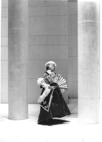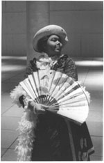 seit einem Jahr eine Residenz in Berlin und neustens auch im Internet. "Fräulein Kaiserin, Jahrgang 1966, ca. 162 cm, Haarfarbe: Pink, besondere Fähigkeiten: -Stimmlage: Mezzo bis Sopran, kann Jodeln...." - so oder ähnlich sehen sie aus, die Bewerbungsbögen für Werbemodelagenturen und Künstler- & Komparsenvermittlungen, die sie gerade dutzendweise abschickt. "Jetzt helfen nur noch Verzweiflungstaten," sagt sie mit einem bitteren Lachen, "das kann nicht mehr so weiter gehen. Irgendwie muß ich berühmt werden." Ihr Diskant überschlägt sich bei dem Wort berühmt. Und das leicht satirische Kichern und das Kopfschütteln sagen mir, dass sie es doch ernst meint. "Ich schulde meinen Träumen noch Leben," antwortet sie mir auf die Frage, ob sie sich nicht zu schade wäre für solche 'kleinen Jobs'. "Die zahlen wenigstens, wenn `se dich nehmen, hier in Berlin kannst du dich zu Tode benefizen. Hier hat niemand Geld und wenn in der Szene Gagen gezahlt werden, dann kannnst Du davon vielleicht mit dem Taxi nach Hause fahren. - Aber ich will nicht motzen, wenigstens wird tunt hier engagiert und bekommt das Gayfühl* gaybraucht* zu werden". Ganz anders als im Ruhrgaybeat* oder ihren letzten Jahren in Düsseldorf. Dort war ich zwar so etwas wie eine "Institution" irgendwie bekannt, irgendwie wurde auch mein Fehlen auf Veranstaltungen bemerkt, aber engagiert wurde ich dort nicht. Damals war ich oft in Hamburg, München und noch öfter in den Provinzen : Am Niederrhein, in Friedrichshafen und noch mehr Käffern, derern Namen ich schon nach der Begrüßung wieder vergessen hatte. Aber in der Heimat ein Engagement? Nie! Vielleicht liegt es daran, dass ich nicht betteln kann. Ich bring´ es einfach nicht fertig, Veranstaltern solang auf die Nerven zu gehn, bis die mich nehmen. Und selbst mit gutem Management hat das bis heute nicht geklappt." Ein anderes Problem: sie findet keine Live Piano-Begleitung. "In Düsseldorf wollten alle, die sich auf Anzeigen und Aushänge meldeten, gleich Probengeld. Konnt´ich zwar "fair"stehn´, aber nicht zahlen." Hier in Berlin läuft es ähnlich."Ich brauch´ dummerweise Leute, die echt gut sind, die auch mal transponieren können. Und am besten auch Kompositionstalent haben. Aber solche Leute finden sich leider nur einmal in hundert Jahren. Georgette Dee hat im letzten Jahrhundert ihren kongenialen Terry Truck gefunden und in diesen Jahrhundert bin ich dran!", rettet sie sich aus der bisher doch eher depressiven Stimmung. Also blicken wir auf ihre Erfolgsbilanz : Herbst 1999, kaum in Berlin angekommen, gewinnt sie bei einem Quizspiel auf der IFA ein Dualband-Handy und eine quittengelbe Designer-Luftmatratze im stolzen Werte von 759,-DM. Dann bekam sie Zuschauer-Freikarten für 'Vera am Mittag' - sie konnte die Klappe mal wieder nicht halten und landete so im Februar im Fernsehen. "U.Z.m.W", witzelt Sie :"Unbezahlte Zuschauerin mit Wortbeitrag. Das kannst du hier an jeder Ecke werden. Ich muss mit meiner Mediengeilheit ein bißchen aufpassen, sie gut dosieren, nicht dass die Kamerateams gleich abschieben - nach dem Motto: "nicht DIE schon wieder". Jetzt bei der Berlinale war es schwer. Da könnte ich leicht etwas überpräsent gewesen sein, aber ich muss beruflich auf so viele Empfänge und Parties, wie ich kann." Bei dem genüßlich ausgesprochenen Wort "beruflich" lacht sie sich wieder halbtot. ![]() "Oh, da mußt du dir Einiges gayfallenlassen. Die schreiben da nur liebevoll gaymeine Sachen über Tunten und Drags." Und wieder schwingt dieser kleine Stolz und die Gaynugtuung mit als "Tunte" wahrgenommen zu werden. Also nun komme ich nicht drum herum, auch wenn mir jetzt ein langes, verworrenes Elaborat als Antwort sicher ist. Was ist eine Drag Queen? Worin unterscheidet sie sich von anderen "Weiblichkeiten"? Was ist eine Tunte? Und was unterscheidet "eine Tunte geboren im Körper einer lesbischen Frau" (so Frl. Kaiserins Selbstdefinition) von anderen Tunten / Drags / Lesben? - Die Kürze einiger Antworten verblüfft mich dann doch: "Erstens ist Drag die Abkürzung für: dressed as girl (gekleidet als Mädchen). Queen soll wahrscheinlich den Hang zu Glamour darstellen. Daher ist übrigens das Wort Drag King vollständiger Quatsch, denn die kleiden sich ja als Jungs - das müsste wohl eher Drab : dressed as boy oder Dram : dressed as man heißen. Nun, so sind die Amis eben und wir Blöden übernehmen einfach alles unhinterfragt. Aber bevor ich mich aufrege - lies meinen Beitrag : "The Igel hääs biien läändet !" in ' Toll!Toll!Toll! das Berliner Tuntenbuch', da erkläre ich alles genau. Aber weiter: Junge gekleidet als Mädchen, Drags - um die Indikationsgruppe ranken sich deine Definitionsfragen - kleiden sich heute modisch. Und die Mode wird durch die Musikvideo -Idole & Stars wie Madonna und Co. geprägt. Diese kleiden sich seit Jahren im lasziven Schick zu teuren Edelnutten, der Trend bei den Stars geht weg von luxuriös geschneiderten Roben (50er - 70er Jahre) hin zu luxuriös geschneiderten Körpern wie bei Cher. Das ganze gepaart mit dem kollektiven Drang zur "Übertreibung". Was als Hommage oder Lookalike anfing, hat sich verselbstständigt, auch durch den Drang, sich ständig inden Mittelpunkt zu rücken. Sei es als Hackordnung untereinander oder als gayschlossene Front gegen die "Spießer". Es gibt auch in Deutschland biologische Frauen, die dieses Verständnis von Drag (vielleicht unbewusst) leben. Die Berühmtesten sind : Desirée Nick & Sissi Perlinger. Ich glaub, sie sind kaum zu erkennen ohne Fummel & Schminke. Sich zu schminken bedeuten in diesem Fall nicht, eine Maske aufzulegen, um sich zu verstecken, wie uns Hobbypsychologinnen gerne erzählen. Sich zu schminken ist vielmehr die Offenlegung eines verborgenen Selbst, das Eingeständnis, nicht von Anfang an vollkommen zu sein. Als Crossdressing bezeichnet sich das Anlegen/Leben in der Kleidung des "anderen Geschlechts". Travestie ist die Bezeichnung der reinen Bühnenform des Crossdressens (Fumme