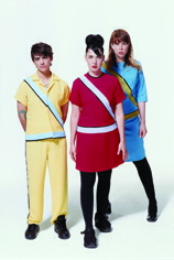 ![]() Ihre Musik bezeichnen sie als "Feminist Electronic Punk". Die Stücke entstehen zuhause am Computer mit Pro Tools, die Daten werden ausgetauscht, jede kann für sich daran weiterarbeiten. Es sind rockig-elektronische Songs für den Dancefloor, die sie aus Samples, Gitarrenloops, Keyboardmelodien, Drum-Machine und Gesang basteln. Ihre radikalen Texte sind ihnen wichtig. So basiert "New Kicks" auf gesampelten Slogans einer New Yorker Antikriegsdemo. Auf der Bühne sind Le Tigre ein Feuerwerk an guter Laune, mit einer lebendigen Tanzchoreographie in glamourösen Outfits, Live-Gesang, Keyboard und Gitarren, im Hintergrund eine Videoshow. Vor drei Jahren, im November 2001, zierten Le Tigre zum ersten Mal das Titelbild der lespress. Im damaligen Interview antwortete Kathleen Hanna auf die Frage nach der Möglichkeit, mit einer großen Plattenfirma ein breiteres Publikum zu erreichen, beinahe empört: "Was hieße es denn, ein "bißchen mehr Mainstream" zu werden? Für unsere Kunst Kompromisse einzugehen, unsere Community von Freunden und Fans zu befremden, unsere Tage der Promotion-Arbeit zu widmen - innerhalb einer Medienmaschinerie, die Frauen und queers hasst? Wäre es das etwa wert?! Viele Leute meinen, es sei ein strategisches politisches Versäumnis, daß wir nicht bei einem der großen Plattenlabel unter Vertrag sind, weil wir nicht die größtmögliche ZuhörerInnenschaft mit unserer "Message" erreichen würden. Aber diese Kritik kommt von einem Modell von "politischer Effektivität", das wir nicht teilen. Wir sind nicht unbedingt daran interessiert, unsere abweichende Meinung in den Mainstream einzufügen - obwohl wir das manchmal tun - , sondern wollen uns mit einer feministischen Underground-Szene auseinandersetzen. Dabei wollen wir ein alternatives ökonomisches System unterstützen, damit die radikale Kunst Ressourcen zur Verfügung hat, und damit wir so unabhängig wie möglich von Unternehmensinteressen leben können." Heute sehen sie das anscheinend ganz anders: seit kurzem sind Le Tigre bei dem Konzern Universal unter Vertrag. Am 1.11. erscheint dort ihr Album "This Island". Eine Promoterin vermutet lächelnd: "Vielleicht brauchen sie einfach Geld." Doch die drei von Le Tigre hätten Gespräche mit Labels weltweit geführt und lange um diese Entscheidung gerungen, erzählten sie Irene Hummel im Interview. Was sprach für den Wechsel zu einem Majorlabel? Johanna Fateman: Wir wollten eine größere Plattform haben, um mehr Leute zu erreichen. Nicht nur um unsere Message zu verbreiten, sondern auch um als Künstlerinnen zu wachsen. Ich denke, dass feministische Künstlerinnen immer noch von vielen Möglichkeiten abgeschnitten sind, um die Kunst zu machen, von der sie träumen. Wir sehen es als eine Äußerung von Selbstvertrauen: wir sind es wert! Wir sollten ein tolles Video haben, wir sollten diese Platte exakt so produzieren dürfen, wie wir wollen - und es ist okay, das Geld dafür zu nehmen. Wir glauben nicht an weibliche Selbstunterdrückung als einzig politisch korrekte Position. Entspricht die Arbeit mit Universal euren Vorstellungen? JD Samson: Wir entschieden uns für Universal, weil es schien, als würden sie uns genau das tun lassen, was wir wollen. Außer dass wir jetzt viel mehr Interviews geben, hat sich für uns nicht viel geändert bei Universal. Sie reden uns nicht rein, nicht in die Texte, nicht ins Cover, nicht in unser Aussehen - nichts. Das hat mich echt überrascht, und das macht mich sehr glücklich: wir bleiben wir und sind dennoch auf einem großen Label. Ich glaube, die Leute sind bereit. Vielleicht hat ja der Hass gegen Frauen und Queers tatsächlich abgenommen. Immer mehr Leute wollten uns sehen, und mit einem Majorlabel im Rücken erreichen wir viel mehr Leute. Wir müssen sichtbar sein! JD, von Sichtbarkeit handelt ja auch dein Song "Viz"? JD: Ja, es ist eine Geschichte über eine Lesbe auf einer Heteroparty. Zuerst fühle ich mich sehr einsam und bin nervös, bis ich noch eine Lesbe entdecke. Dann beginne ich meine Rolle dort positiv zu sehen, als eine Art Sichtbarkeits-Service für andere Lesben und Queers. ![]() JD: Ja, aber sie werden immer so klischeehaft dargestellt! Die Lesben sind alle sehr femme, also Lipstick-Lesben. Man hält darum Lesben allgemein für femme, für hot und sexy. Ich hoffe, dass ich an diesem Bild mit meinem Beispiel etwas verändern kann. Hattest du früher Vorbilder, an denen du dich orientieren konntest? JD: In der Highschool war ich regelrecht besessen von Lynn Breedlove von Tribe 8. Sie war die Größte für mich. Als ich sie später kennen lernte, dachte ich: oh mein Gott, das ist der verrückteste Moment in meinem Leben. Es ist wirklich überwältigend, wenn man sein lebenslanges Vorbild persönlich trifft. Ihr seid erklärte Feministinnen. Das ist unverändert wichtig, nicht wahr? Johanna: Absolut. Manche Leute denken, die Zeiten des Feminismus sind vorbei, weil die Frauen jetzt wählen dürfen oder so. (Sie lacht) Aber unsere extrem rechtskonservative Regierung möchte in Bezug auf die Selbstbestimmungsrechte der Frauen die Zeit am liebsten noch zurückdrehen. Und Frauenfeindlichkeit, Sexismus, gender-bedingte Unterdrückung - all das ist noch lange nicht aus unserer Gesellschaft verschwunden. Es geht uns nicht nur um die im Gesetz verankerten Rechte bzw. deren Durchsetzung, sondern auch darum, als Frauen in der Kunst beharrlich präsent zu sein und damit wieder andere Frauen zu ermutigen, ihre Stimme zu finden. Ihr habt euch in der "Bands Against Bush-Tour" engagiert, und viele Leute als WählerInnen gewonnen. Was wünschst du dir für Amerika? Johanna: Ich hoffe sehr, dass George W. Bush aus dem Amt herausgewählt wird und dass unter einer neuen Präsidentschaft einiges wieder aufgebaut werden kann, was in den vergangenen vier Jahren zerstört oder abgeschafft wurde - sowohl inneramerikanisch als auch global gesehen. JD erzählte, dass viele bei einer befürchteten Wiederwahl von Bush die USA verlassen woll